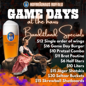 Attention Banditland! Stop by Hofbräuhaus Buffalo for the ultimate game day experience, featuring Bandits Game Day specials!