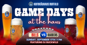 Hey, ey, ey, ey! Let’s GO Buffalo! Join us this Sunday for the Buffalo Bills home opener! Enjoy food and drink specials, and DJ BUCKW!LD! All ages are welcome. For reservations, please visit www.hofbrauhausbuffalo.com or call (716)…