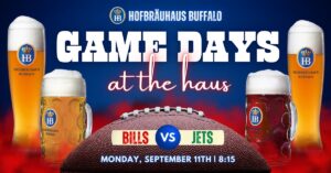 Hey, ey, ey, ey! Let’s GO Buffalo! Join us this Sunday for the Buffalo Bills home opener! Enjoy food and drink specials, and DJ BUCKW!LD! All ages are welcome. For reservations, please visit www.hofbrauhausbuffalo.com or call (716)…
