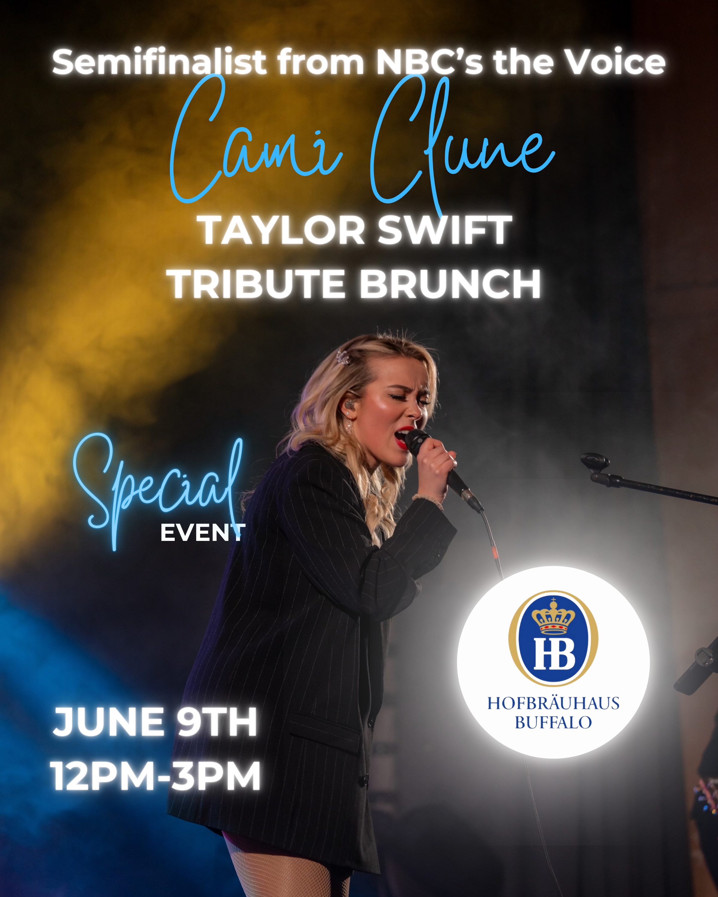 We’re thrilled to announce that NBC The Voice’s Semifinalist, CAMI CLUNE, will be performing live at Hofbrauhaus Buffalo!