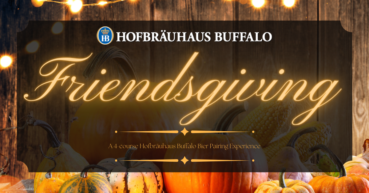 The time to gather is here. Join Hofbräuhaus Buffalo for an intimate 4-course Friendsgiving Bier Pairing Experience. Gather your closest friends and family members for Friendsgiving at Hofbräuhaus Buffalo! Braumeister, Scott Shuler and Event Coordinator Matthew Chase, along with our culinary team, have curated 4-course feast featuring our Haus-brewed biers paired with authentic Bavarian cuisine. This is event is for guests 21+.