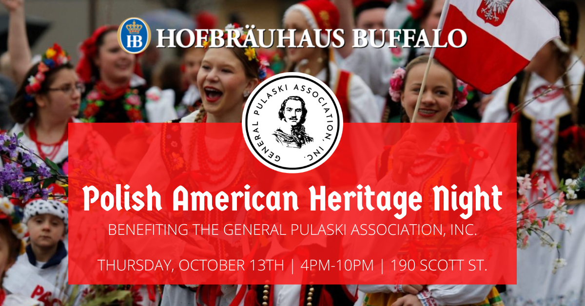 Join the Buffalo/WNY Polish community as we celebrate Polish American Heritage Month at Hofbräuhaus Buffalo! A portion of the proceeds will benefit the General Pulaski Association, Inc. Funds will go towards building a Cultural and Event Center. To learn more about the General Pulaski Association, please visit www.generalpulaski.com