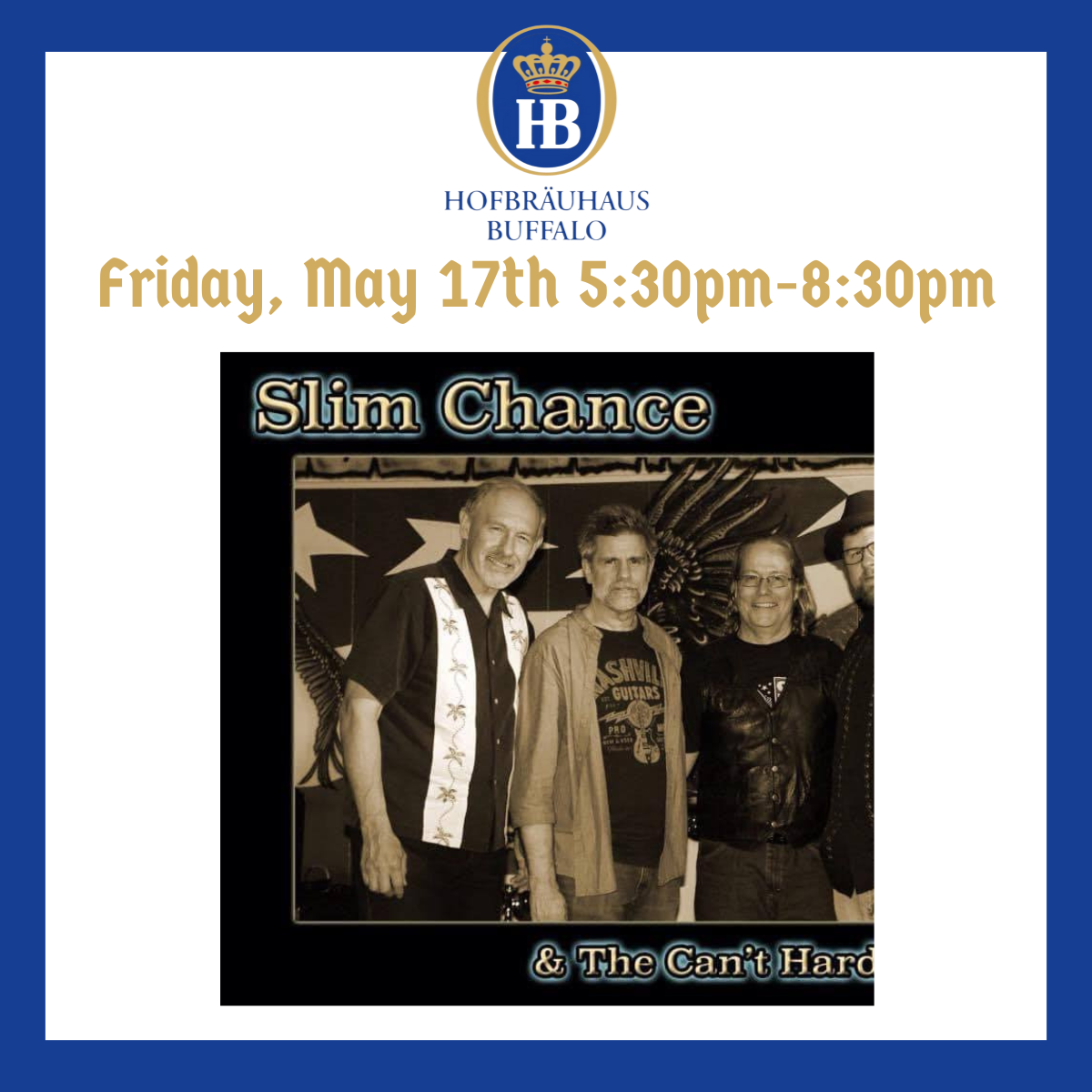 Join us as we host the band Slim Chance on Friday, May 17th from 5:30pm – 8:30pm