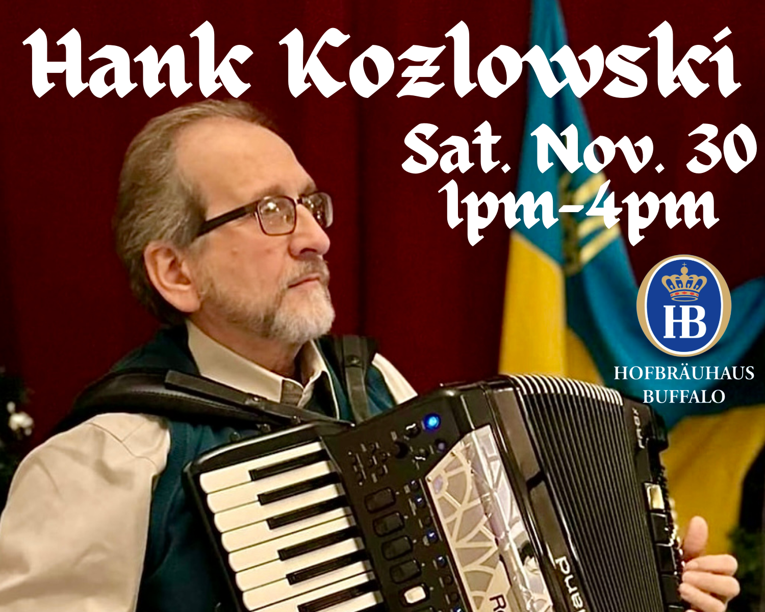 Join us for an unforgettable evening with Hank Kozlowski, our talented solo accordionist, bringing the authentic sounds of Germany to Hofbrauhaus Buffalo!